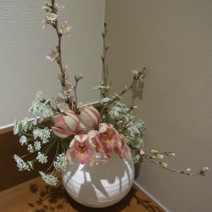 使った桜は啓翁桜といって冬でも咲く桜として有名です。産地は山形県。